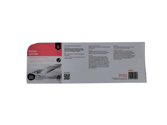 Replacement application label for Veltone bottles. Can be used to replace old or damaged labels and clearly displays essential product and safety information for easy identification and compliance.
